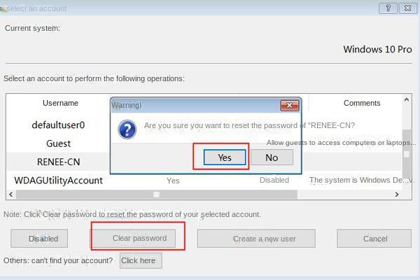 بالنسبة إلى الحساب المحلي والمسؤول، سيقوم Renee Passsnow بإزالة كلمة المرور مباشرة.